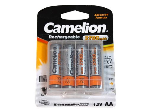 AA Rechargeable Battery 1.2V 4Pc-Pack . Standard Ni-MH 2700mah Battery (Standard Nickel Metal Hydride), Great for High Drain Electronics. Advance Formula, Long Lasting, Camelion Brand (NH-AA2700BP4)good